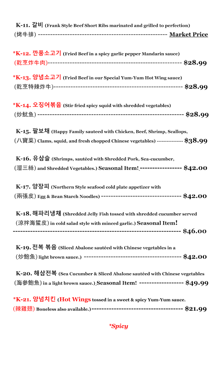 (Batter fried shrimp, scallions, and dried hot peppers coated in a sweet rich sauce and garnished with toasted sesame seeds.)